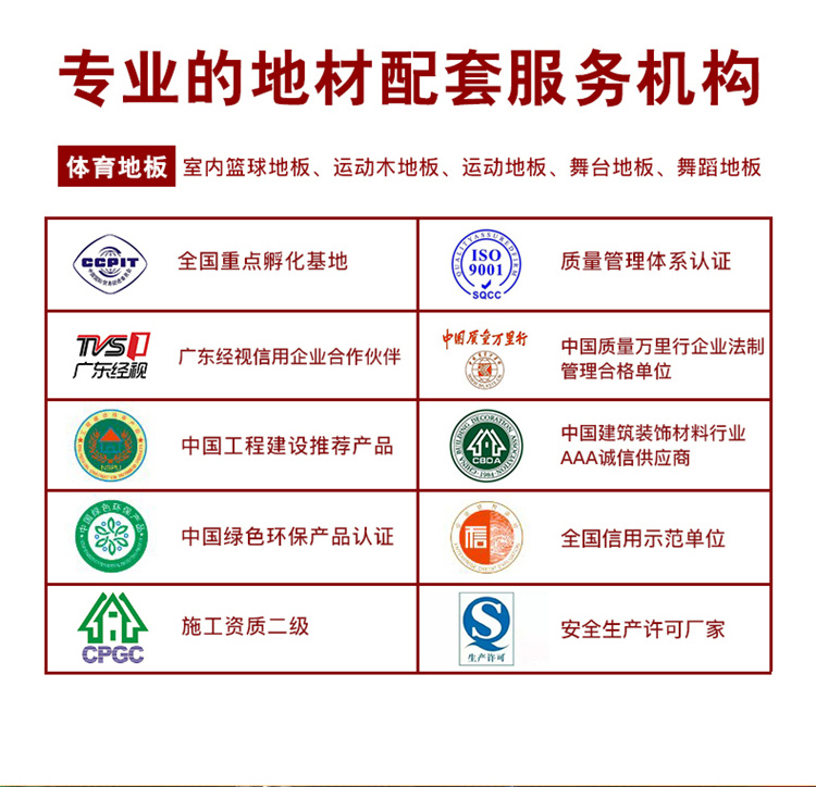 体育专业木地板的承重负荷及牢固化使用寿命必须达到比赛及训练的要求,如活动篮球架及相关运动设施在木地板上移动时,木地板的表层和结构不能因此受到破坏。这也就是DIN标准所描述的滚动负荷标准的概念。